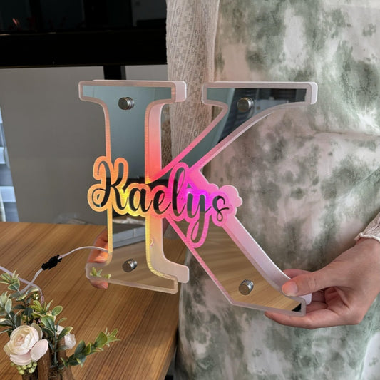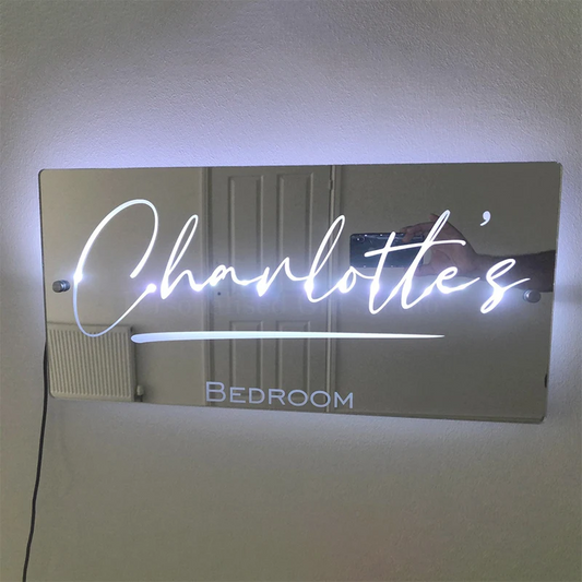Espejo iluminado personalizado con nombre, letrero personalizado para dormitorio, regalo para niños
