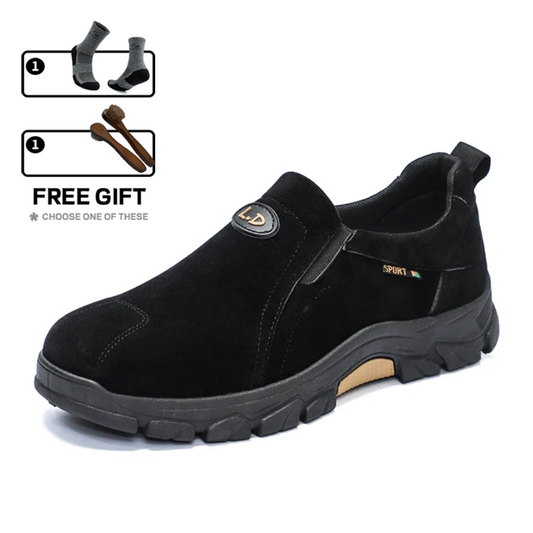 Zapatos de cuero genuino transpirables para exteriores para hombre, antideslizantes, sin cordones, con soporte para el arco, ortopédicos